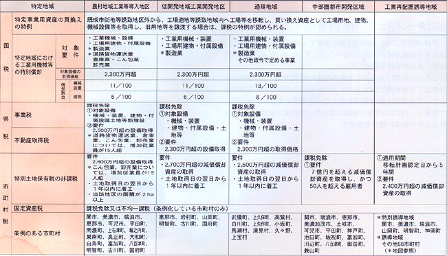 地域開発諸法による税制上の優遇借置